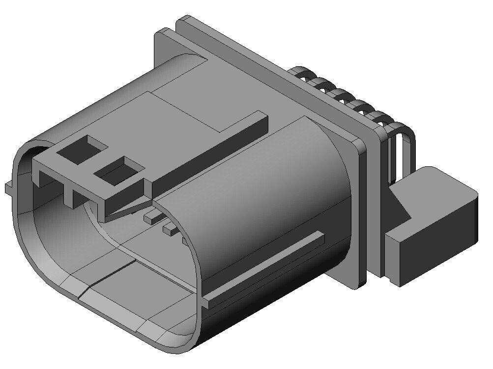 Compact automotive Connector, Low profil, Double fin structure, 040 contacts, waterproof, board-to-cable application, 12 pos., Right angle Pin header