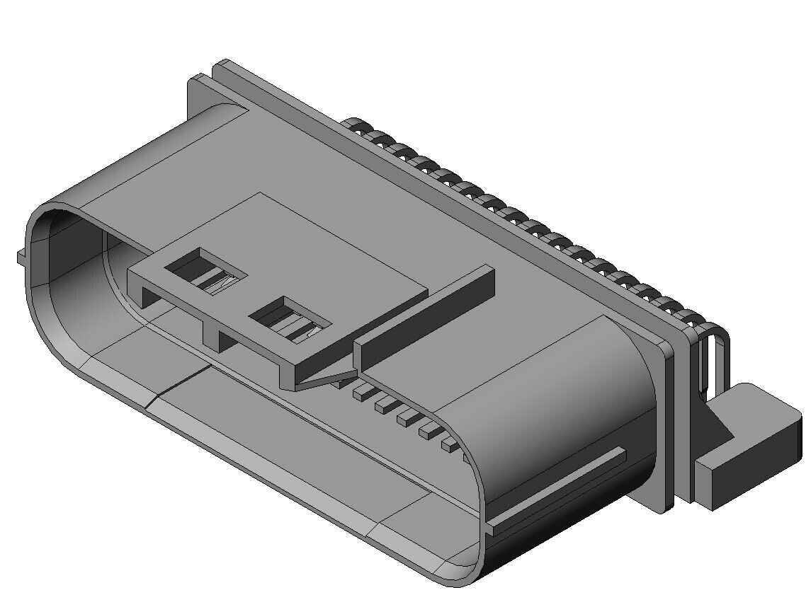 Compact automotive Connector, Low profil, Double fin structure, 040 contacts, waterproof, board-to-cable application, 26 pos., Right angle Pin header