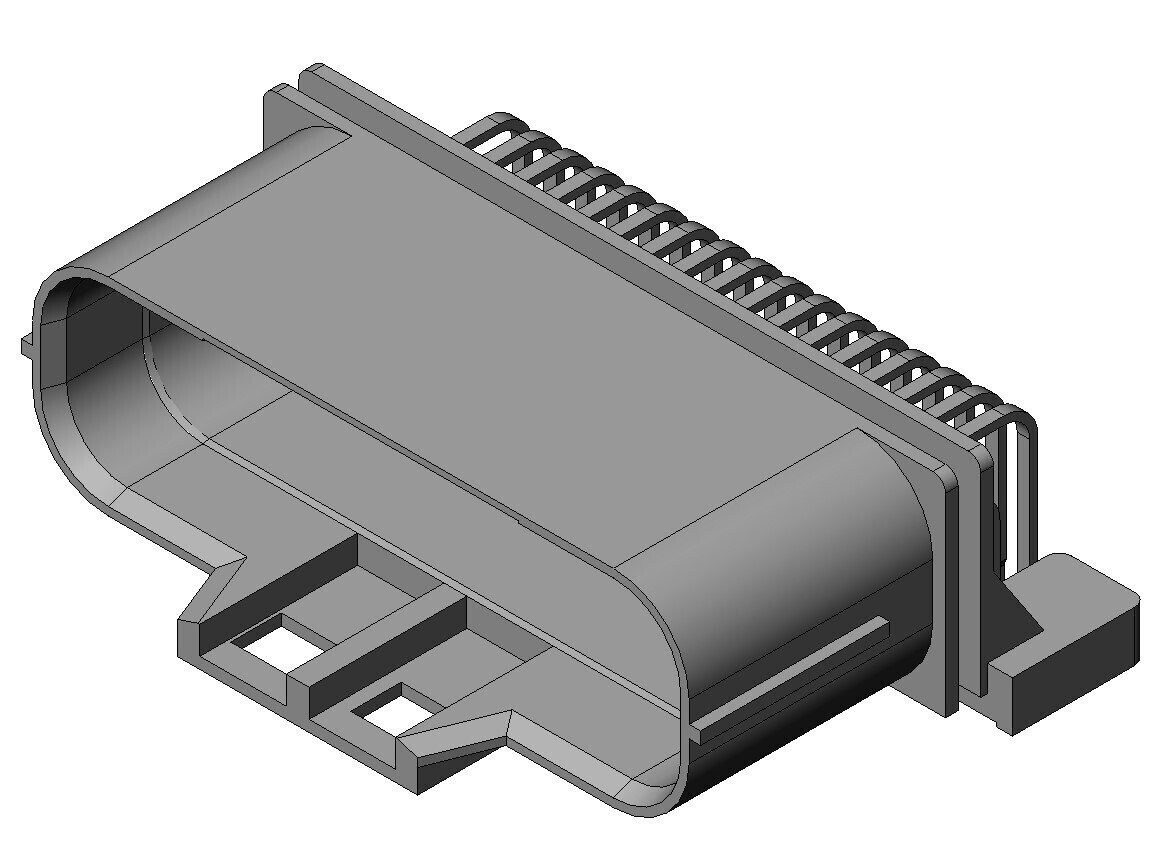 Compact automotive Connector, Low profil, Double fin structure, 040 contacts, waterproof, board-to-cable application, 34 pos., Right angle Pin header