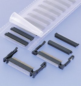 Socket and header which have 50 double-row circuits, conforming to the standard CFA. *A variety of sockets and headers are available. 2 types of sockets are available, SMT type and double-row straddle type designed to accommodate PC board between the two solder tail rows.