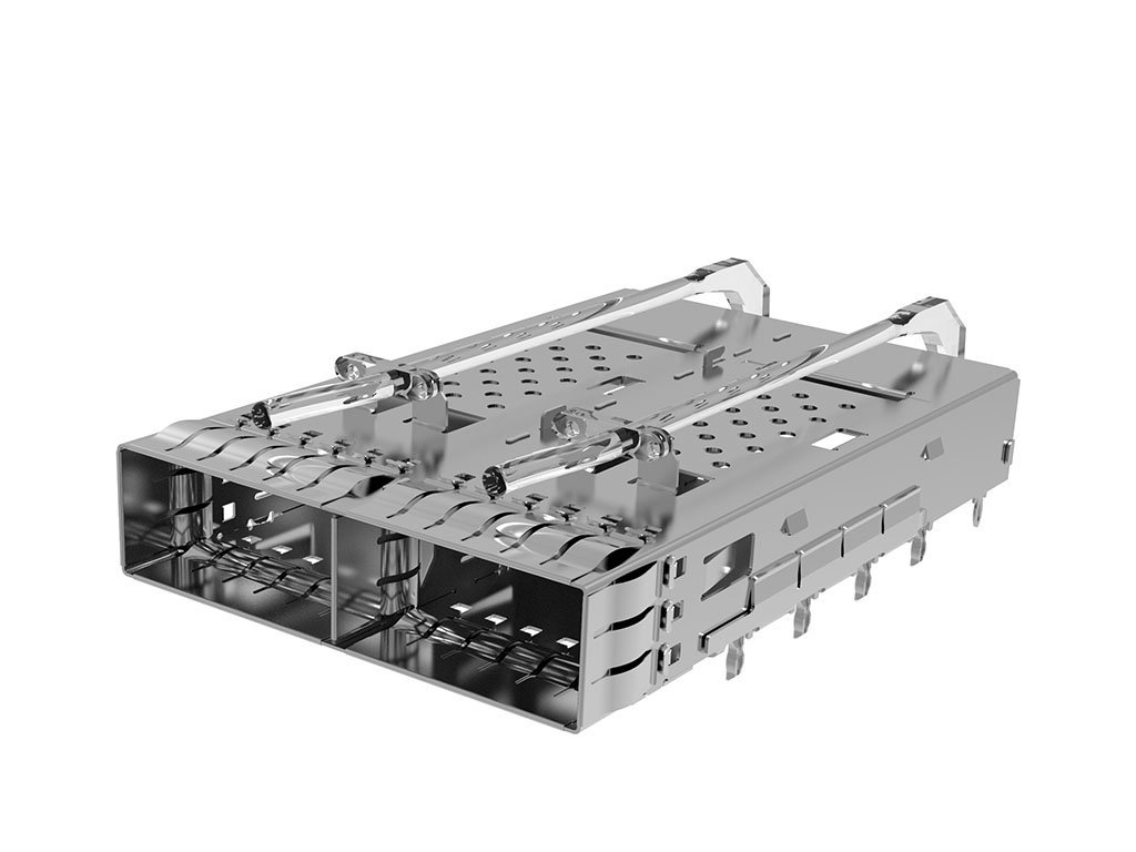zQSFP+ 1-by-2 Cage Assembly with Spring Fingers, Closed Top, Single Lightpipe, No Rear Legs