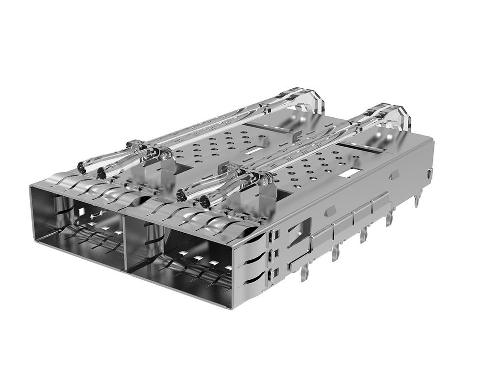 zQSFP+ 1-by-2 Cage Assembly with Spring Fingers, Closed Top, Dual Lightpipe, 1 Rear Leg