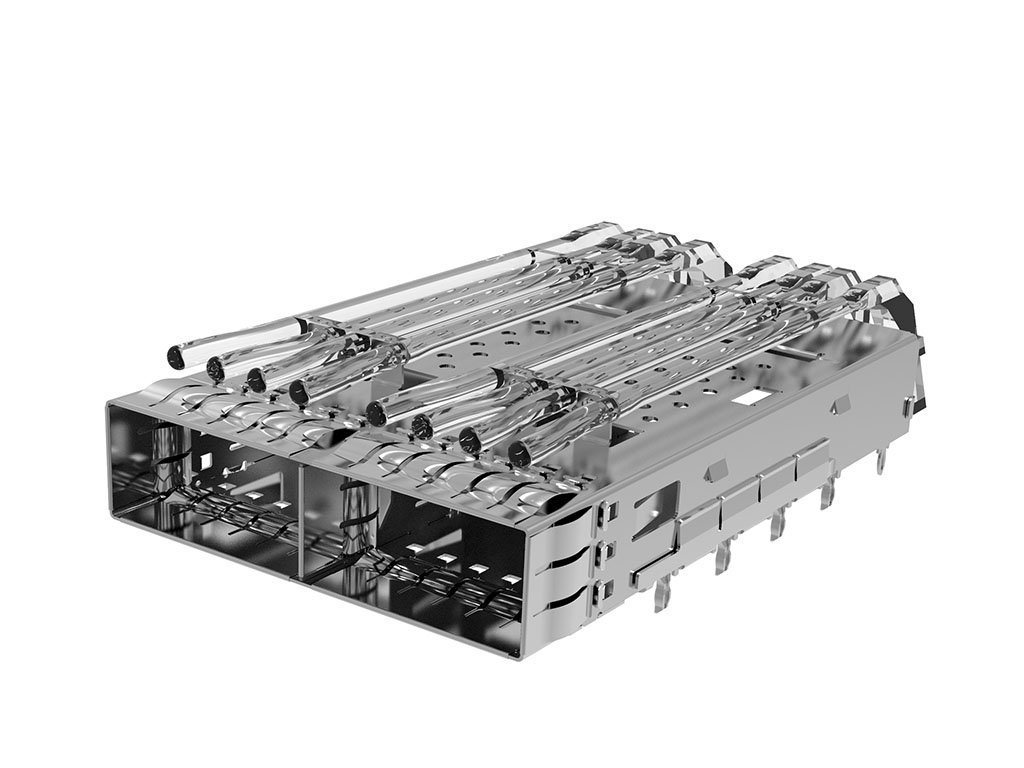 zQSFP+ 1-by-2 Cage Assembly with Spring Fingers, Closed Top, Quad Lightpipe, No Rear Legs