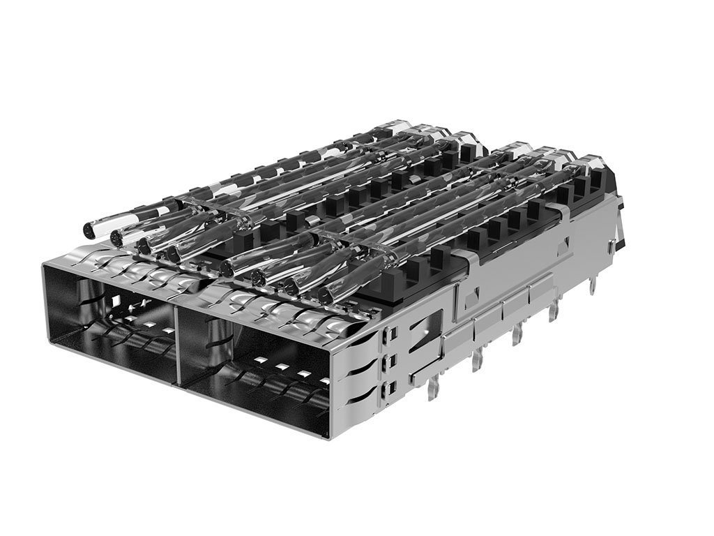 zQSFP+ 1-by-2 Cage Assembly with Spring Fingers, PCI Heatsink, Quad Lightpipe, No Rear Legs