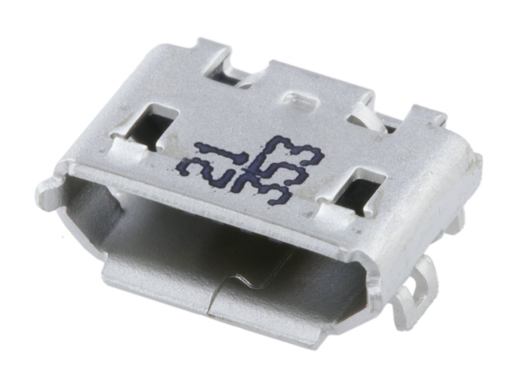Micro-USB B Receptacle, Bottom Mount, Surface Mount with Solder Tabs, Lead-Free
