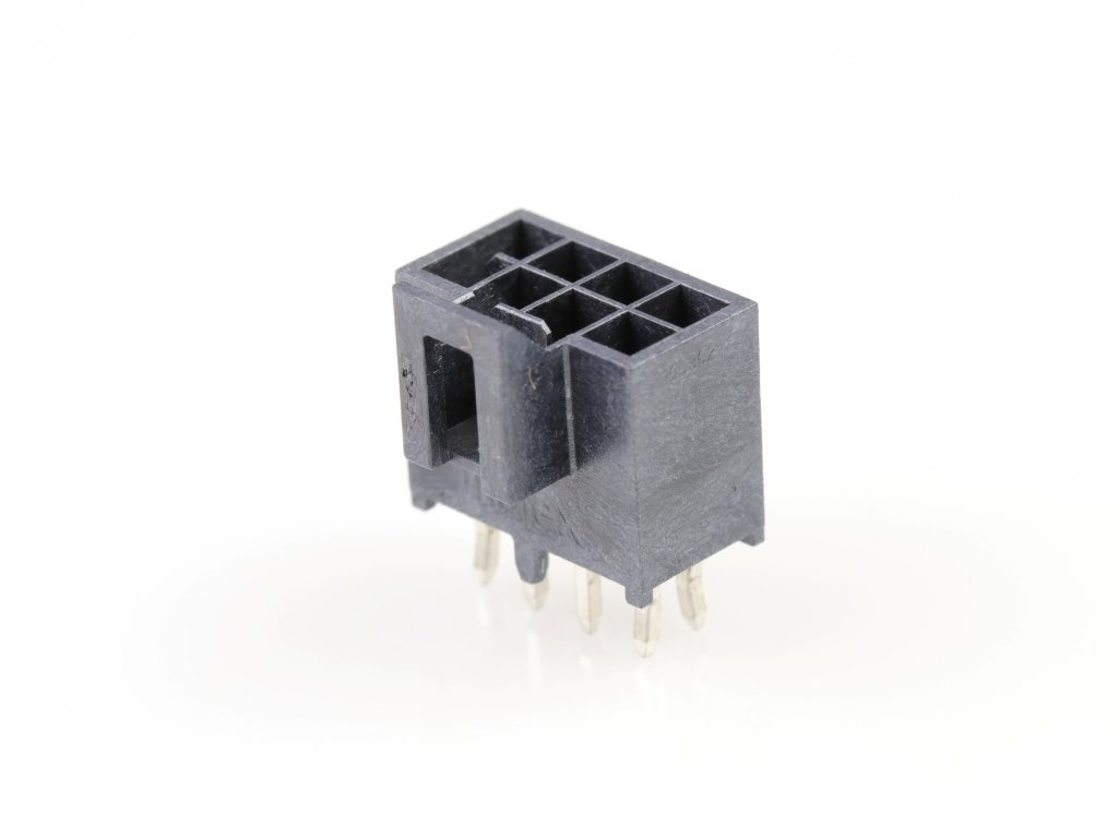 Nano-Fit Vertical Header, Through Hole, 2.50mm Pitch, Dual Row, 8 Circuits, with Kinked Pins, 0.76µm Gold (Au) Plating, Black, Glow-Wire Capable, Tray