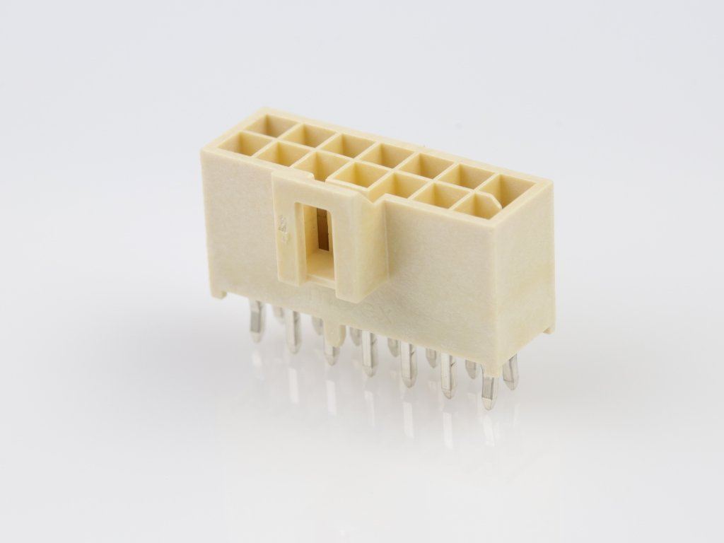 Nano-Fit Vertical Header, Through Hole, 2.50mm Pitch, Dual Row, 14 Circuits, with Kinked Pins, 0.76µm Gold (Au) Plating, Natural, Glow-Wire Capable, Tray