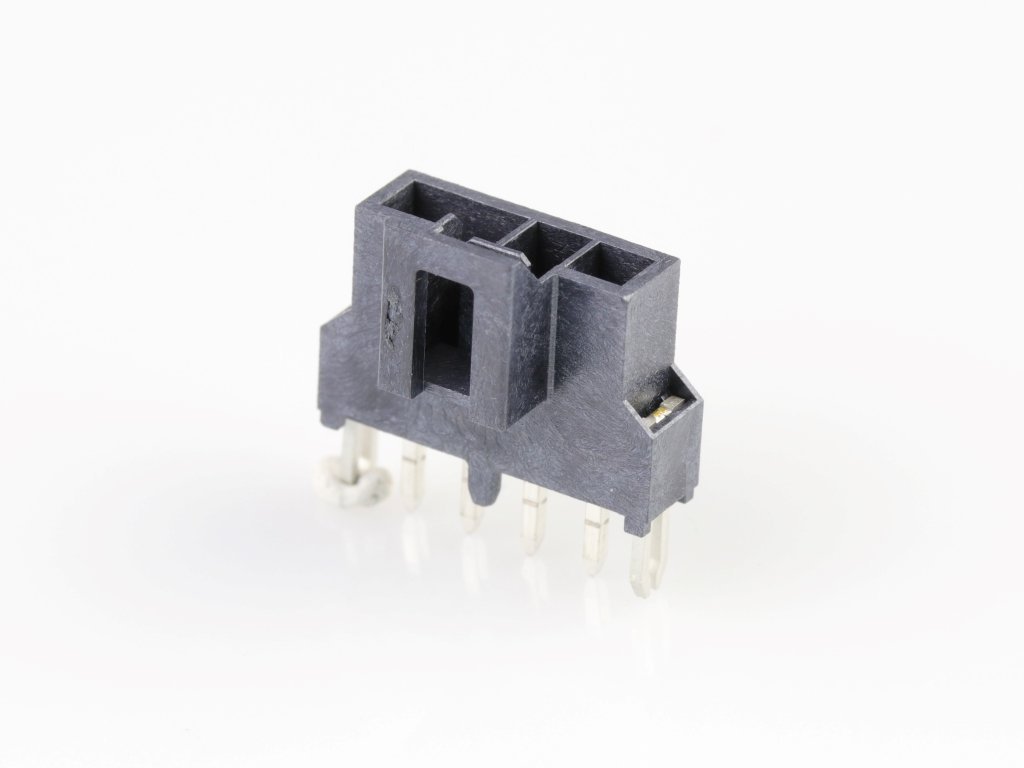 Nano-Fit Vertical Header, Through Hole, 2.50mm Pitch, Single Row, 4 Circuits, with Solder Clips, Tin (Sn) Plating, Black, Glow-Wire Capable, Tray
