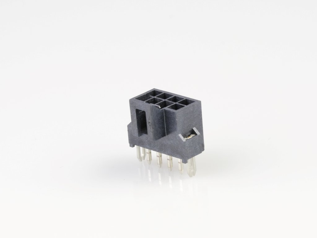 Nano-Fit Vertical Header, Through Hole, 2.50mm Pitch, Dual Row, 8 Circuits, with Solder Clips, 0.76µm Gold (Au) Plating, Black, Glow-Wire Capable, Tray