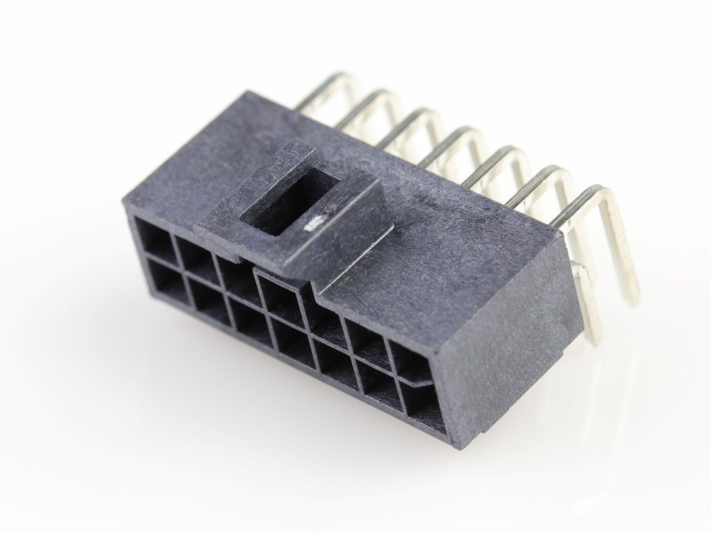 Nano-Fit Right-Angle Header, Through Hole, 2.50mm Pitch, Dual Row, 14 Circuits, Tin (Sn) Plating, Black, Glow-Wire Capable, Tray