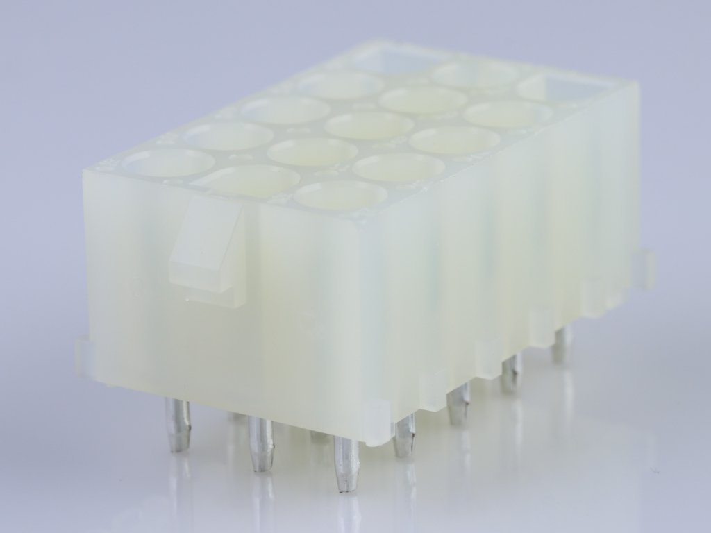 6.35mm Pitch MLX Power Connector, 2.13mm Contact Diameter, Vertical, PCT Polyester, Tin (Sn), White, 15 Circuits