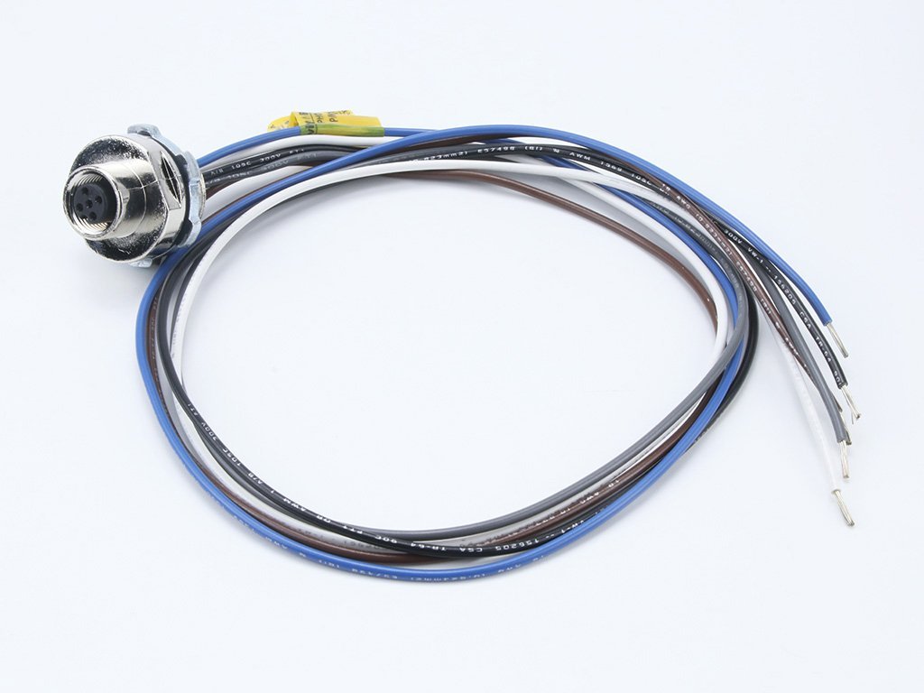 Micro-Change (M12) 5 Pole, 1/2″ – 14 NPT Mounting Thread, Receptacle to 18 AWG PVC Leads, 1.0m (3.28′) Length