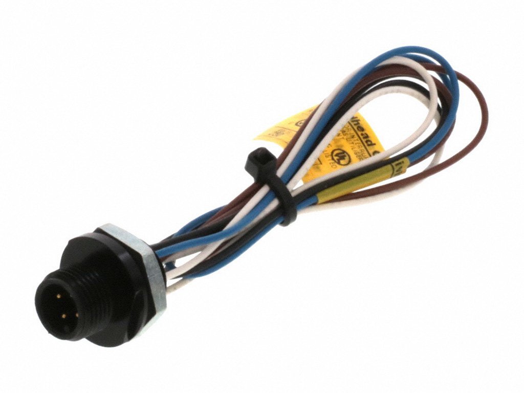 Micro-Change (M12) 4 Poles, Front Panel Mount Receptacle, 1/4″ – 18 NPT Threads, Male (Straight) 22 AWG PVC Leads, 0.305m (1.0′) Length
