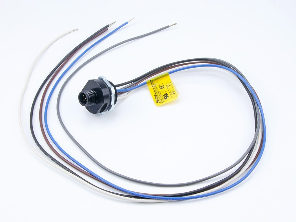 Micro-Change (M12) Receptacle, 5 Pole, 1/2″ – 14 NPT Threads, Male (Straight) to 18 AWG Leads, 0.5m (1.64′) Length