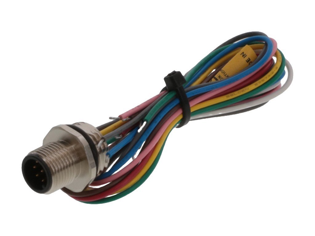 Micro-Change (M12) Receptacle, 8 Pole, PG9 Mounting Threads, Male (Straight) to 0.25mm² PVC Leads, 0.30m (11.81″) Length