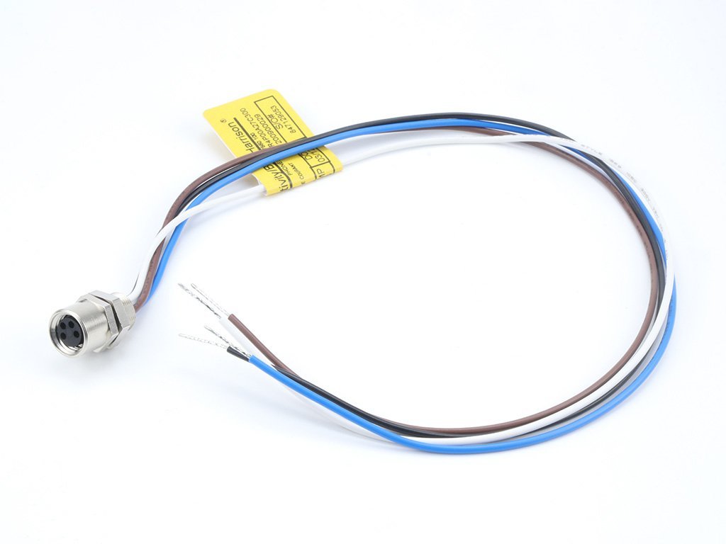 Nano-Change (M8) Receptacle, 4 Poles, A-Coded, M8 x 0.5 Mounting Threads, Female (Straight) to 24 AWG Leads, 0.30m (11.81″) Length