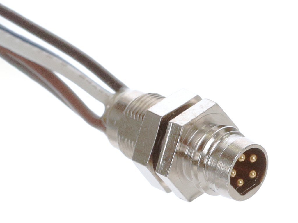 Nano-Change (M8) Receptacle, 5 Poles, B-Coded, M8 x 0.5 Mounting Threads, Male (Straight) to 24 AWG Leads, 0.30m (11.81″) Length
