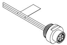 PROFIBUS Trunk Receptacle, 5 Poles, Female (Straight) to Leads, Front Panel Mount, 0.076m (3.00″) Length