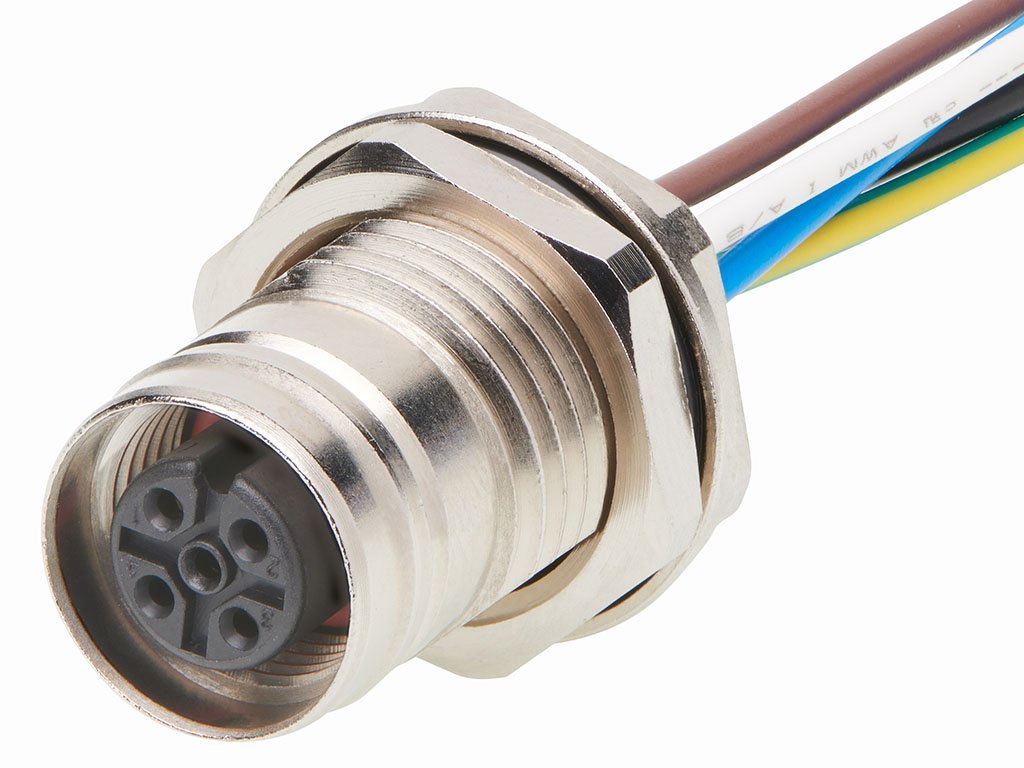 Ultra-Lock 2.0 (M12) Receptacle, 4 Poles, Female (Straight) to Leads, A-Coded, Back Panel Mount, M16 Mounting Threads, 0.30m (11.81″) Length
