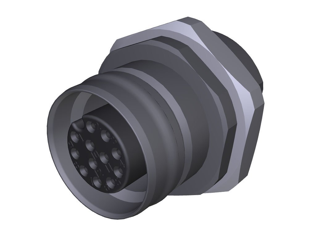 Ultra-Lock 2.0 (M12) Receptacle, 12 Poles, Female (Straight), A-Coded, Front Panel Mount, M16 Mounting Threads, PCB Pins