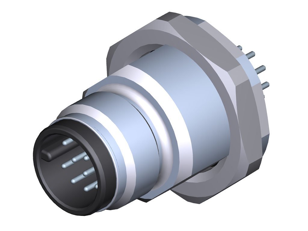 Ultra-Lock 2.0 (M12) Receptacle, 12 Poles, Male (Straight), A-Coded, Back Panel Mount, M16 Mounting Threads, PCB Pins
