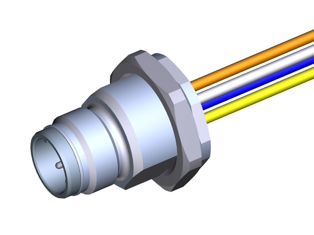 Ultra-Lock 2.0 (M12) Receptacle, 4 Poles, Male (Straight) to Leads, D-Coded, Back Panel Mount, M16 Mounting Threads, 0.50m (1.64′) Length