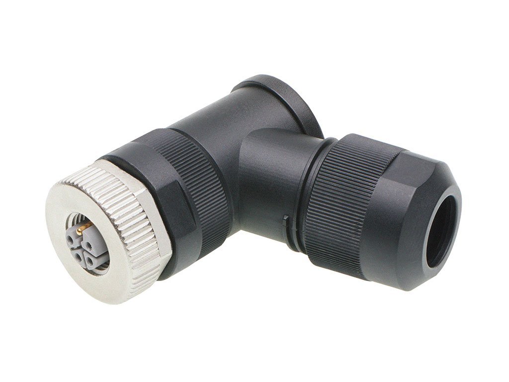 Micro-Change (M12) Field Attachable Connector, 5 Poles, L-Coded, Angled, Female, Unshielded, Screw Termination, Cable Diameter 8.00-13.00mm
