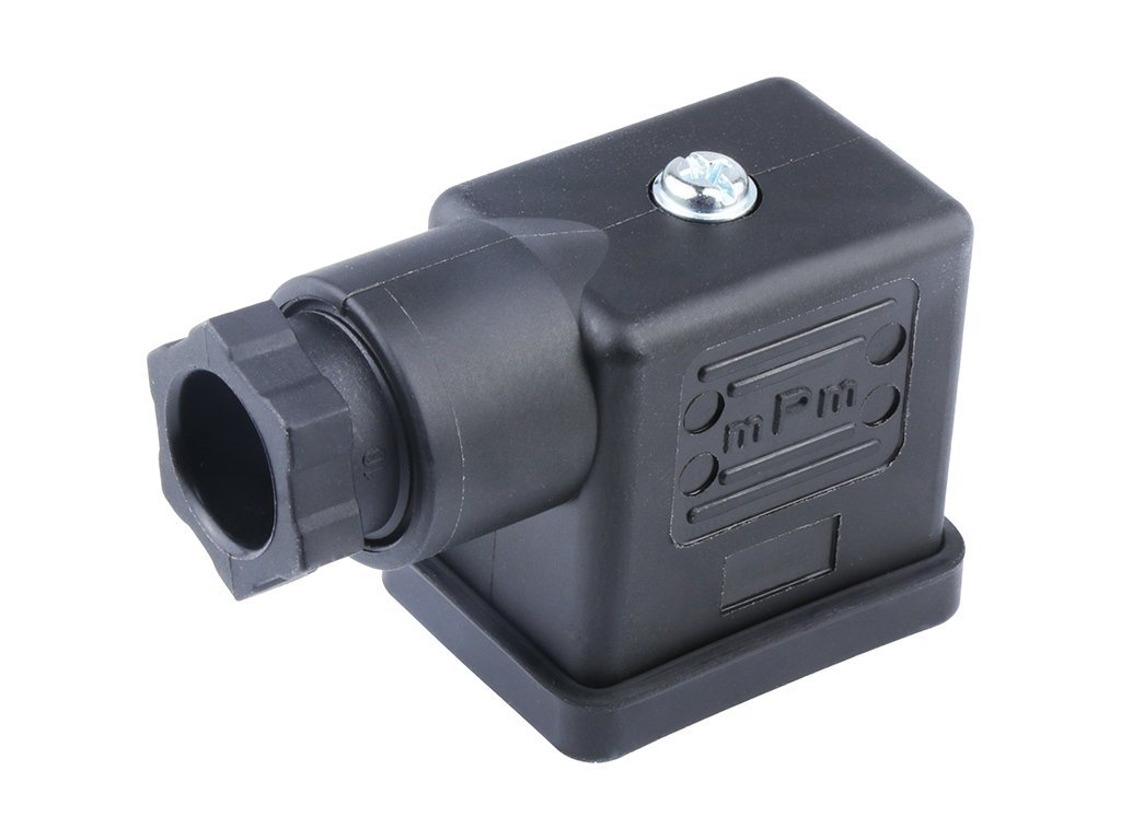 mPm DIN Valve Connector, Form B-11mm, PG9 Internal Threads, 2 Pole Plus Ground with R0 Circuit, 24V, Red LED, Black, Nitrile Profile Gasket and Screw, Mounted, Bulk Pack