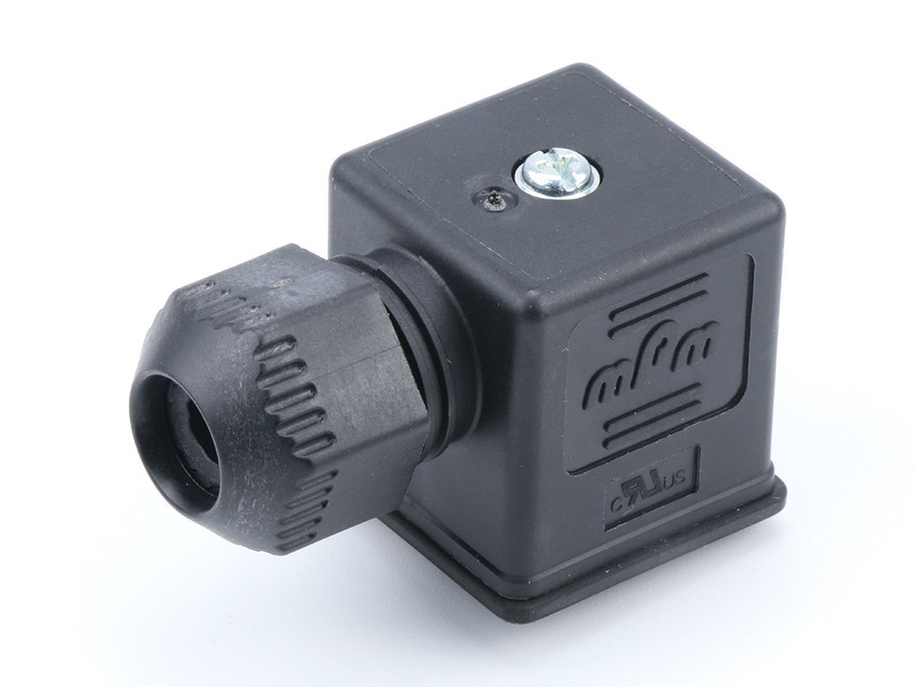 mPm DIN Valve Connector, Form A-18mm, External Thread, 2 Pole Plus Ground Terminal, 250V AC/DC, Black, Integrated Nitrile Gasket, UL94-V0 Rated, Bulk Pack, Mounted