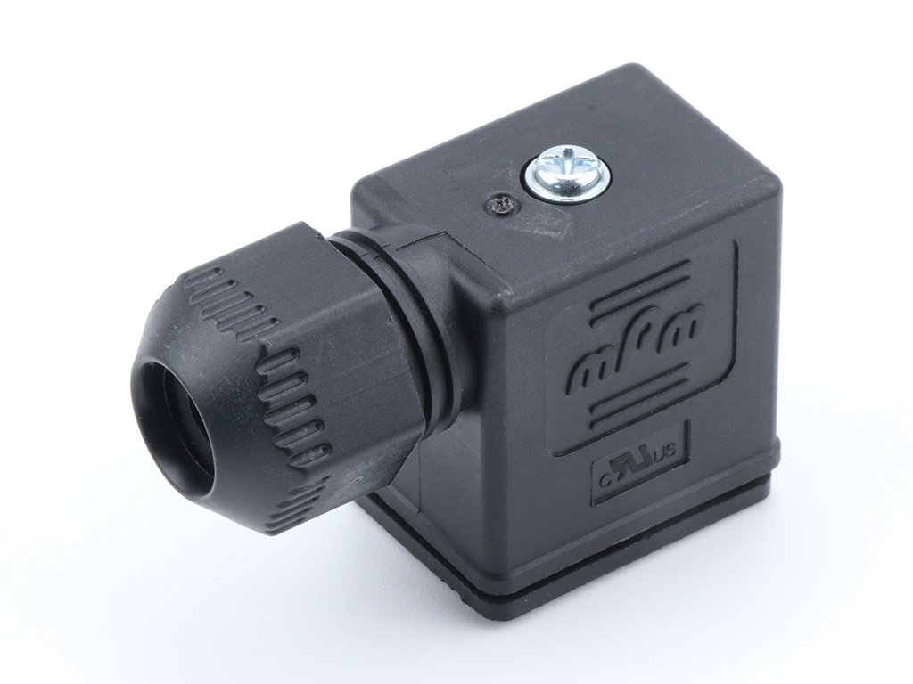 mPm DIN Valve Connector, Form B-11mm, External Thread, 2 Pole Plus Ground Terminal, 250V AC/DC, Black, Integrated Nitrile Gasket, UL94-V0 Rated, Bulk Pack, Unmounted