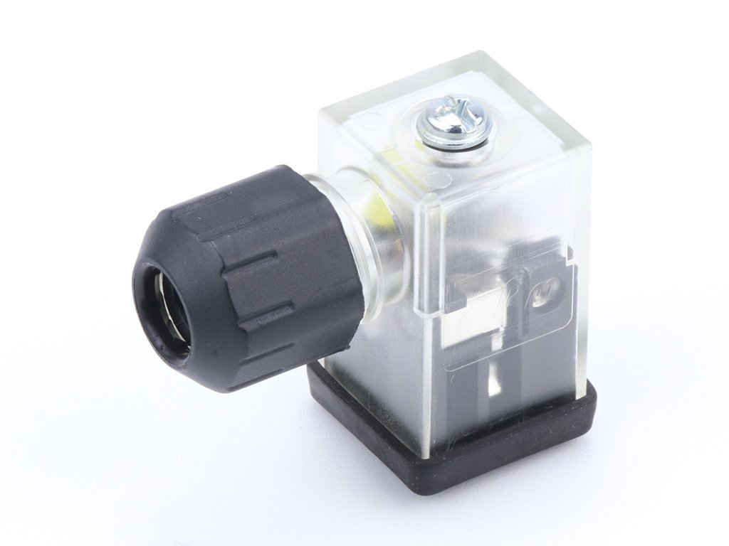 mPm DIN Valve Connector, Form C-8mm, External Threads, 2 Pole Plus Ground with C4 Circuit, 24V, Yellow LED + VDR, Transparent, Profiled Nitrile Gasket, Bulk Pack, Mounted