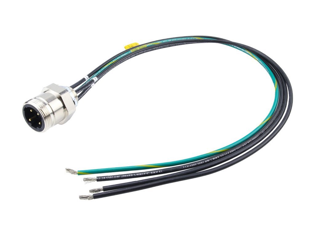 BradPower C-Size (1 1/8”–M29) Receptacle, 4 Poles, Tri-Key, 1/2″ – 14 NPT, Male (Straight) to 12 AWG Leads, 1.0m (3.28′) Length