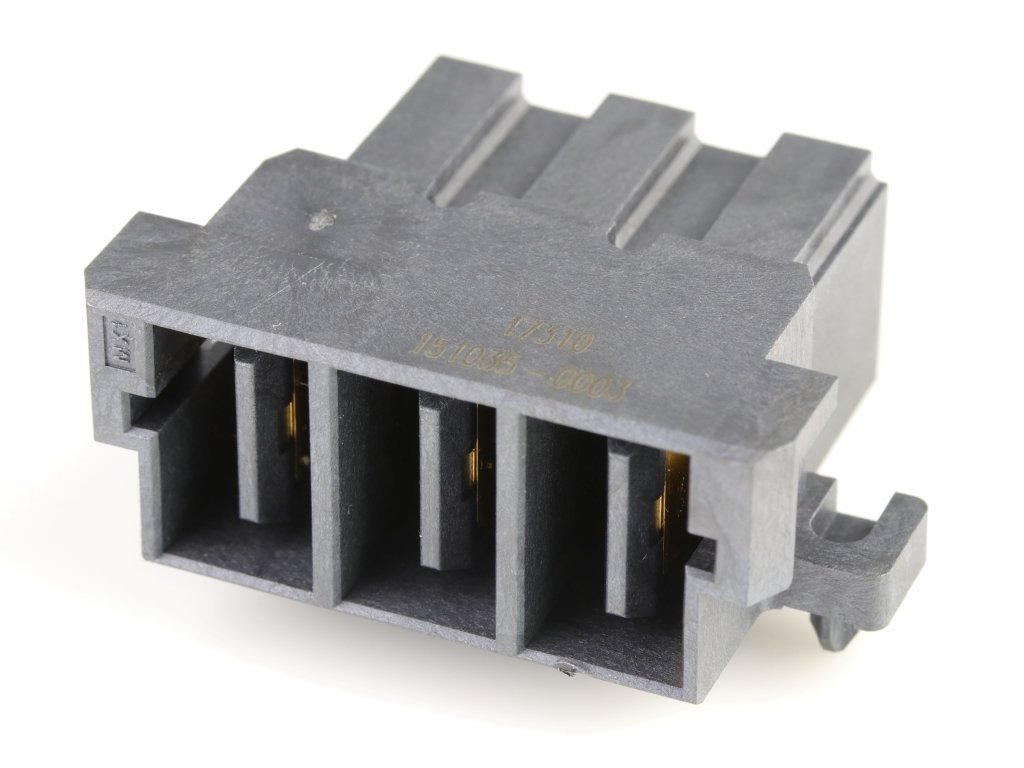 11.00mm Pitch EXTreme Guardian Power Plug, Right-Angle, Gold (Au) Plating, 3.86mm Tail Length, 3 Circuits, with Peg