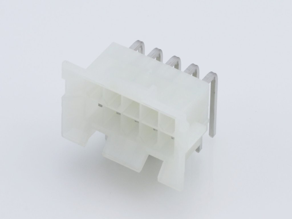 Mini-Fit BMI Header, Dual Row, Right-Angle, with Snap-in Plastic Peg PCB Lock, 10 Circuits, PA Polyamide Nylon 6/6, UL 94V-2, with Tin (Sn) Plating