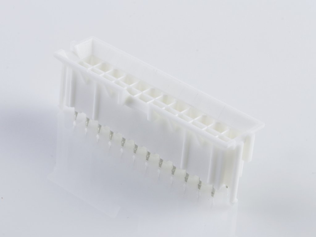 Mini-Fit BMI Header, 4.20mm Pitch, Dual Row, Vertical, with Snap-in Plastic Peg PCB Lock, 24 Circuits, PA Polyamide Nylon 6/6, UL 94V-0, Tin (Sn) Plating, without Drain Holes