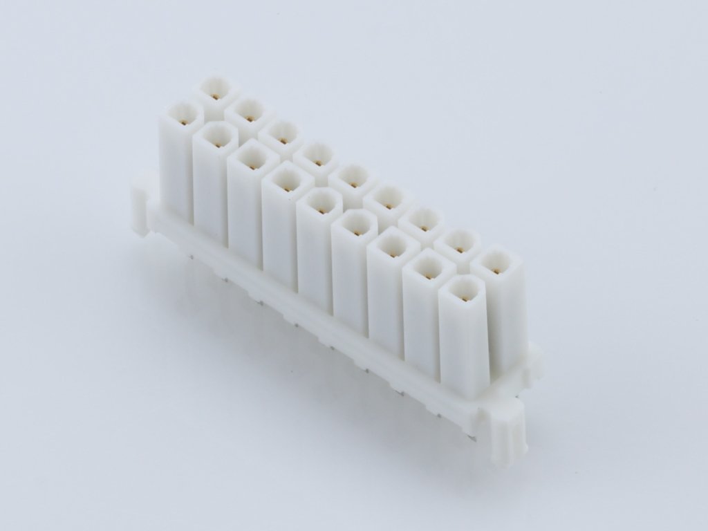 Mini-Fit BMI Receptacle Header, 4.20mm Pitch, Dual Row, Vertical, with Snap-In Plastic Pegs, 0.80µm Gold (Au), UL 94V-0, 18 Circuits