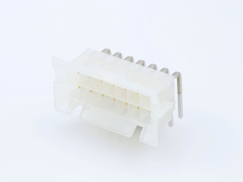 Mini-Fit BMI Header, Dual Row, Right-Angle, with Snap-in Plastic Peg PCB Lock, 14 Circuits, PA Polyamide Nylon 6/6, UL 94V-2, with Select Gold (Au) Plating