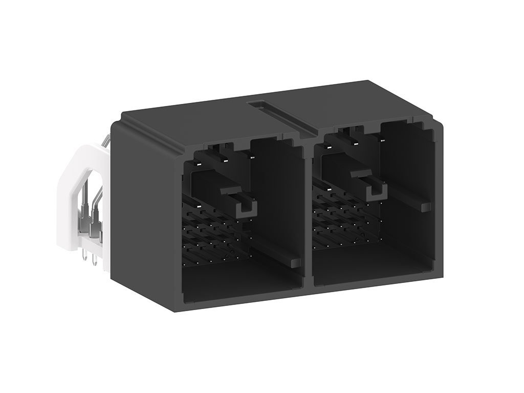 stAK50h 2 Bay Infotainment Hybrid Header, 56 Circuits, Bay A: 28 Circuit/Key 4; Bay B: 28 Circuit/Key 1; 2.50mm and 3.00mm PC Tail Length, UL 94 HB, Black, Tube