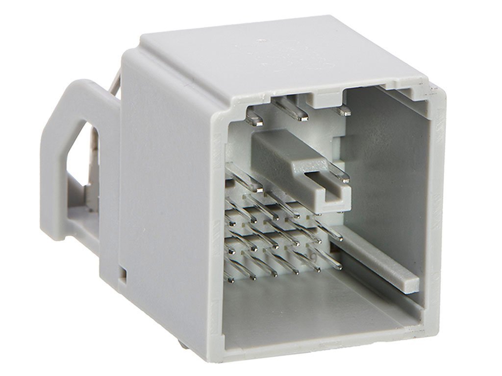 stAK50h Single Bay Infotainment Hybrid Header, 28 Circuits, Key 1, 2.50mm PC Tail Length, UL 94 HB, Gray, Tube