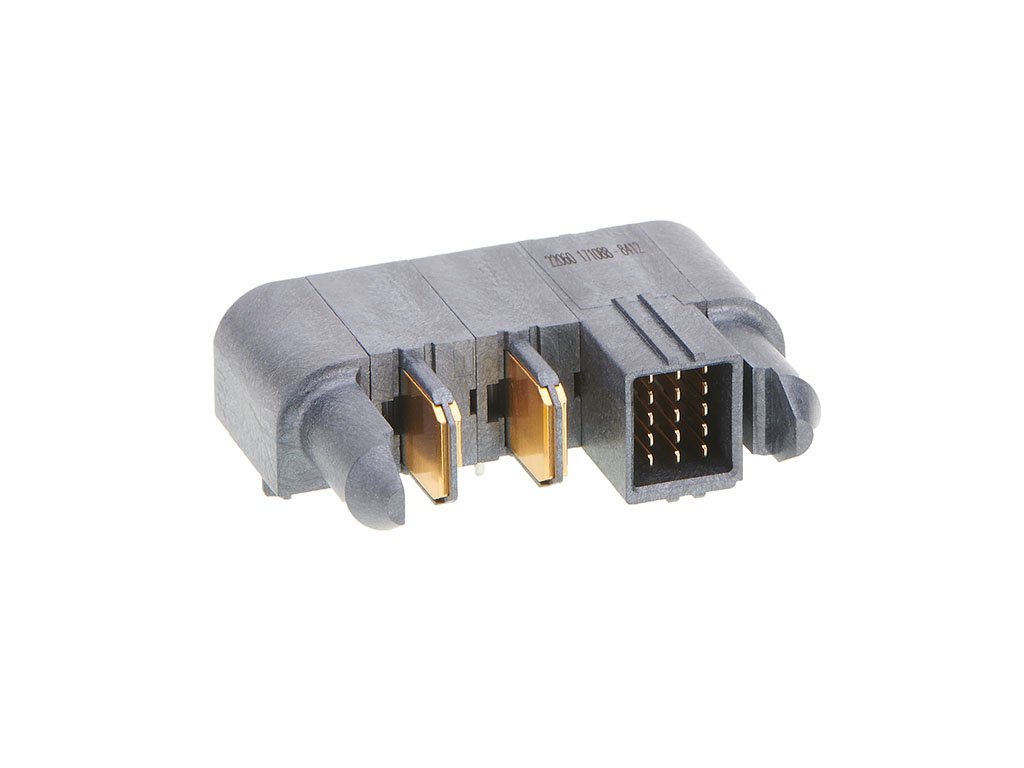 EXTreme Ten60Power Right-Angle Plug with Guides, 2 Split Power Circuits, 15 Signal Circuits, Press Fit Tail