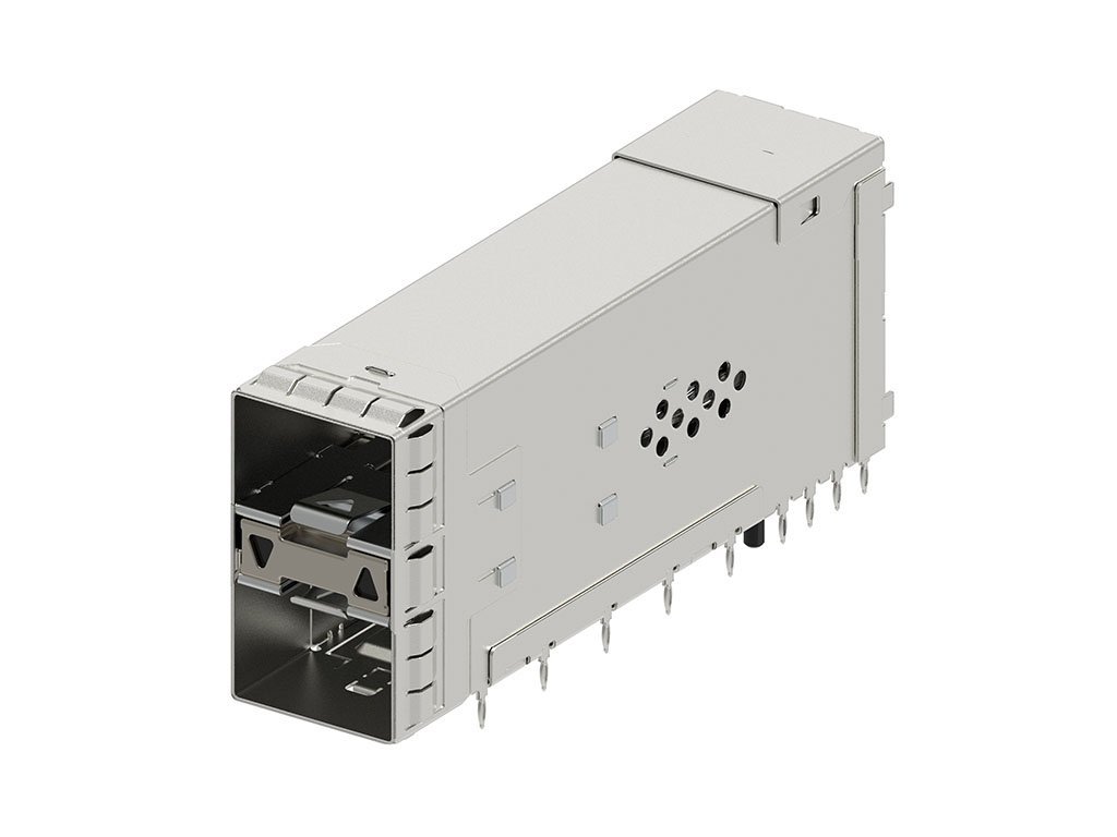 zSFP+ Stacked Ganged Assembly with Metal Spring Fingers, 2-by-1 with Outer Down/Up Light Pipes, 40 Circuits