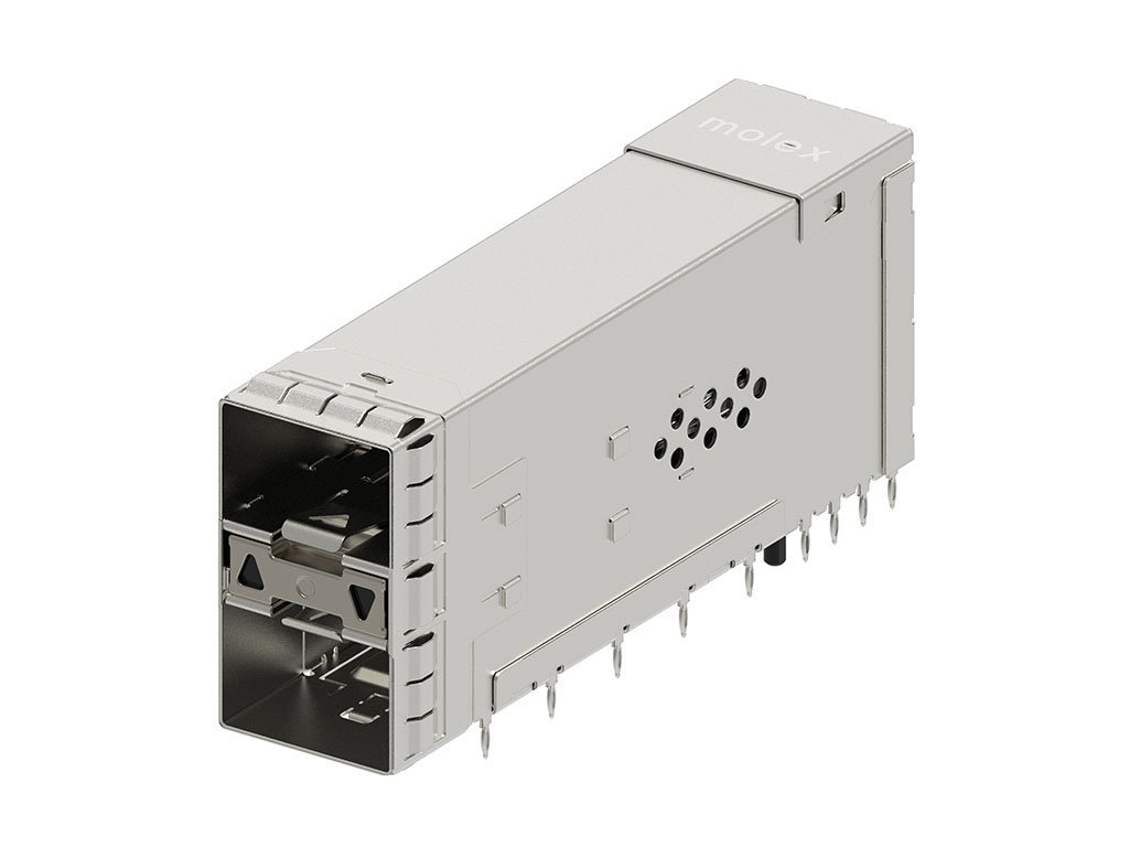 zSFP+ Stacked Ganged Assembly with Metal Spring Fingers, 2-by-1 with Outer Up/Down Light Pipes, 40 Circuits