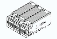 zQuad Small Form Factor Pluggable Plus (zQSFP+) Stacked Integrated 2-by-3 Connector and Cage with Metal EMI Gasket, Gold (Au) Over Nickel Plated, with Internal Heat Sinks, Open Top