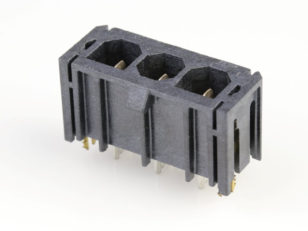 Super Sabre Vertical Header, 3 Circuit, Short Solder Tail with Board Lock, Complies with UL1977 Finger Proof Standards, Glow-Wire Capable