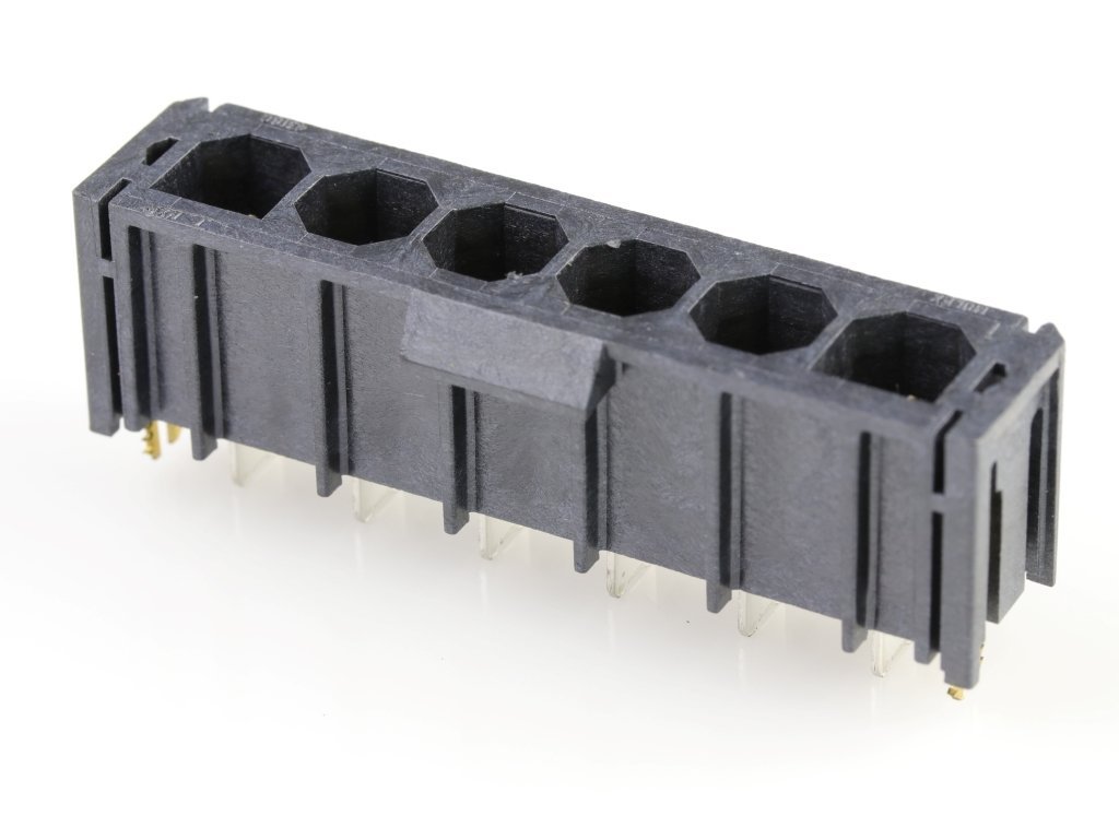 Super Sabre Vertical Header, 6 Circuit, Long Solder Tail with Board Lock, Complies with UL1977 Finger Proof Standards, Glow-Wire Capable