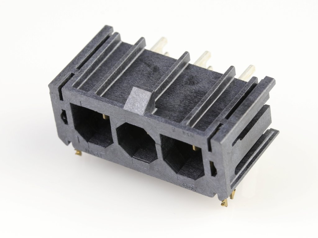 Super Sabre Right-Angle Header, 3 Circuit, Long Solder Tail with Board Lock, Complies with UL1977 Finger Proof Standards, Glow-Wire Capable