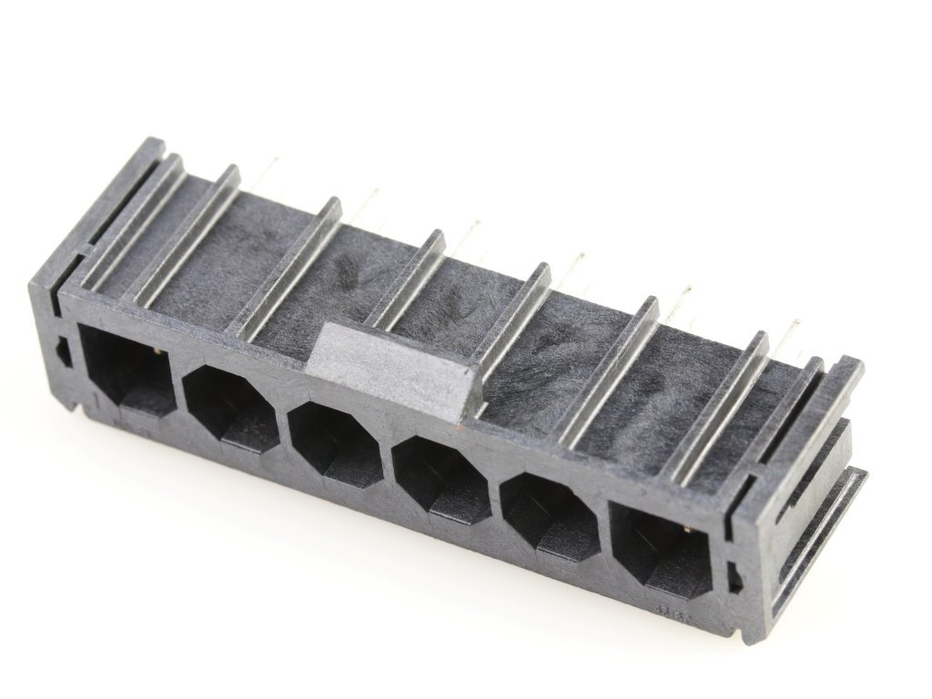 Super Sabre Right-Angle Header, 6 Circuit, Short Solder Tail without Board Lock, Complies with UL1977 Finger Proof Standards, Glow-Wire Capable