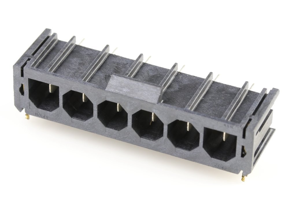 Super Sabre Right-Angle Header, 6 Circuit, Short Solder Tail with Board Lock, Complies with UL1977 Finger Proof Standards, Glow-Wire Capable