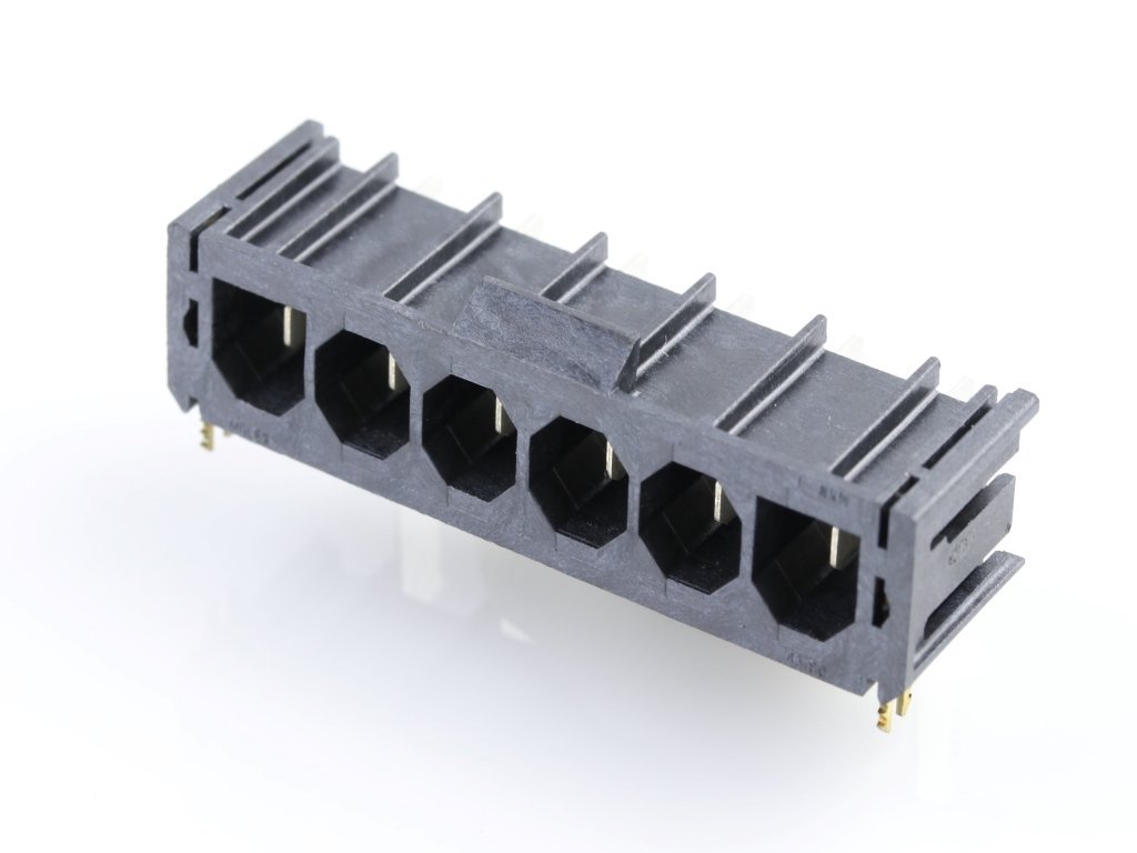 Super Sabre Right-Angle Header, 6 Circuit, Long Solder Tail with Board Lock, Complies with UL1977 Finger Proof Standards, Glow-Wire Capable