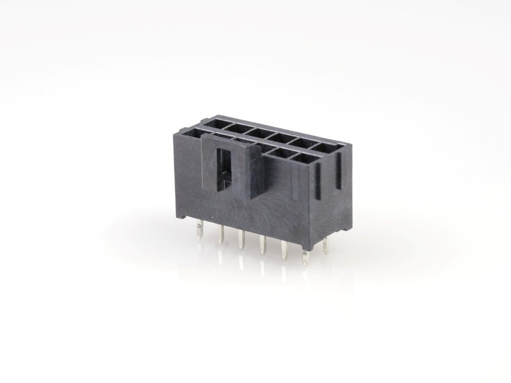Ultra-Fit Vertical Header, 3.50mm Pitch, Dual Row, 12 Circuits, with Kinked Pins, 0.76µm Gold (Au) Plating, Black, Glow-Wire Capable